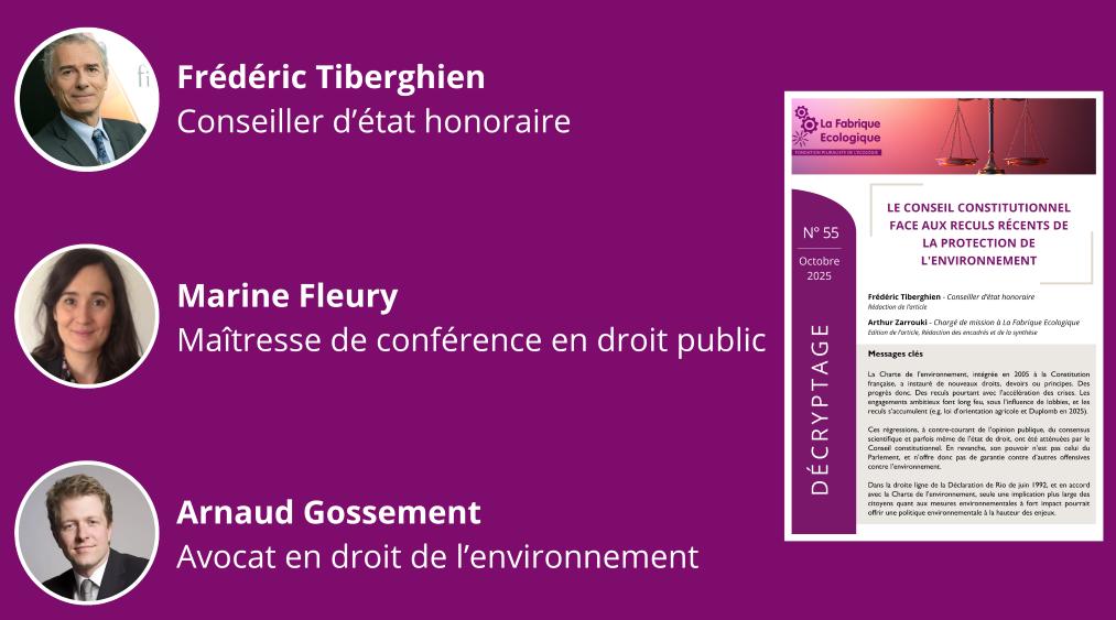 Table ronde organisée par La Fabrique Ecologique autour du décryptage n° 55, « Le Conseil constitutionnel face aux reculs récents de la protection de l’environnement », de La Fabrique Ecologique